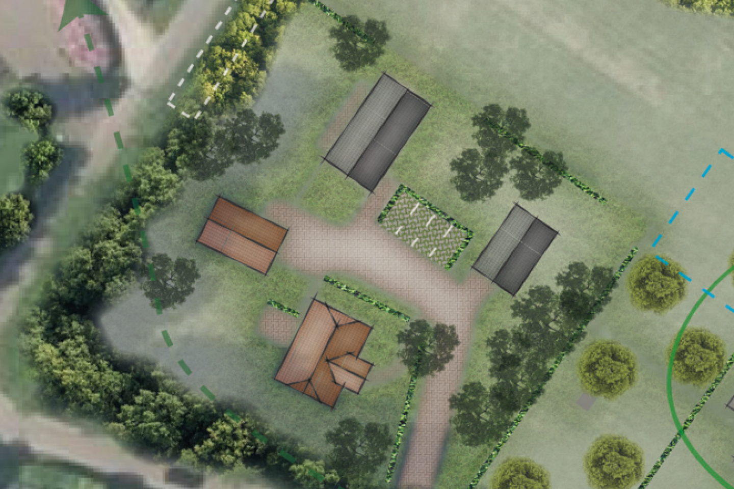 Daarnaast wordt het perceel landschappelijk ingepast met streekeigen beplanting, passend bij het karakter van de stadslanderijen.