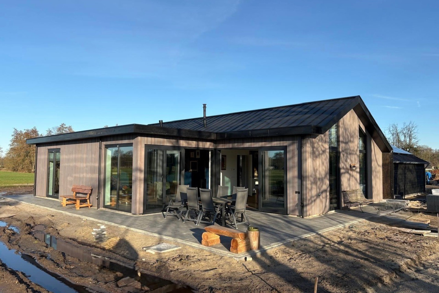 Binnen vormt de royale leefkeuken het hart van het huis. Grote raampartijen bieden een vrij uitzicht over de omliggende weilanden, waardoor binnen en buiten met elkaar worden verbonden. Met de eerste oplevering op dit nieuw te vormen erf is een comfortabel en toekomstbestendig thuis gerealiseerd op een prachtige locatie.