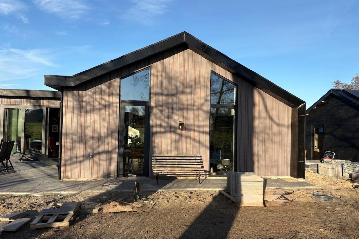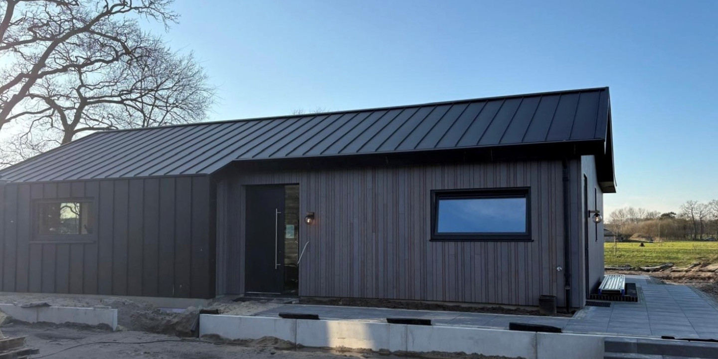 De woning is volledig opgebouwd in houtskeletbouw (HSB), een duurzame en efficiënte bouwmethode. De wanden zijn geïsoleerd met cellulose, wat bijdraagt aan een aangenaam binnenklimaat en een goede energieprestatie. Het dak is uitgevoerd als aluminium felsdak, dat de woning een moderne uitstraling geeft.