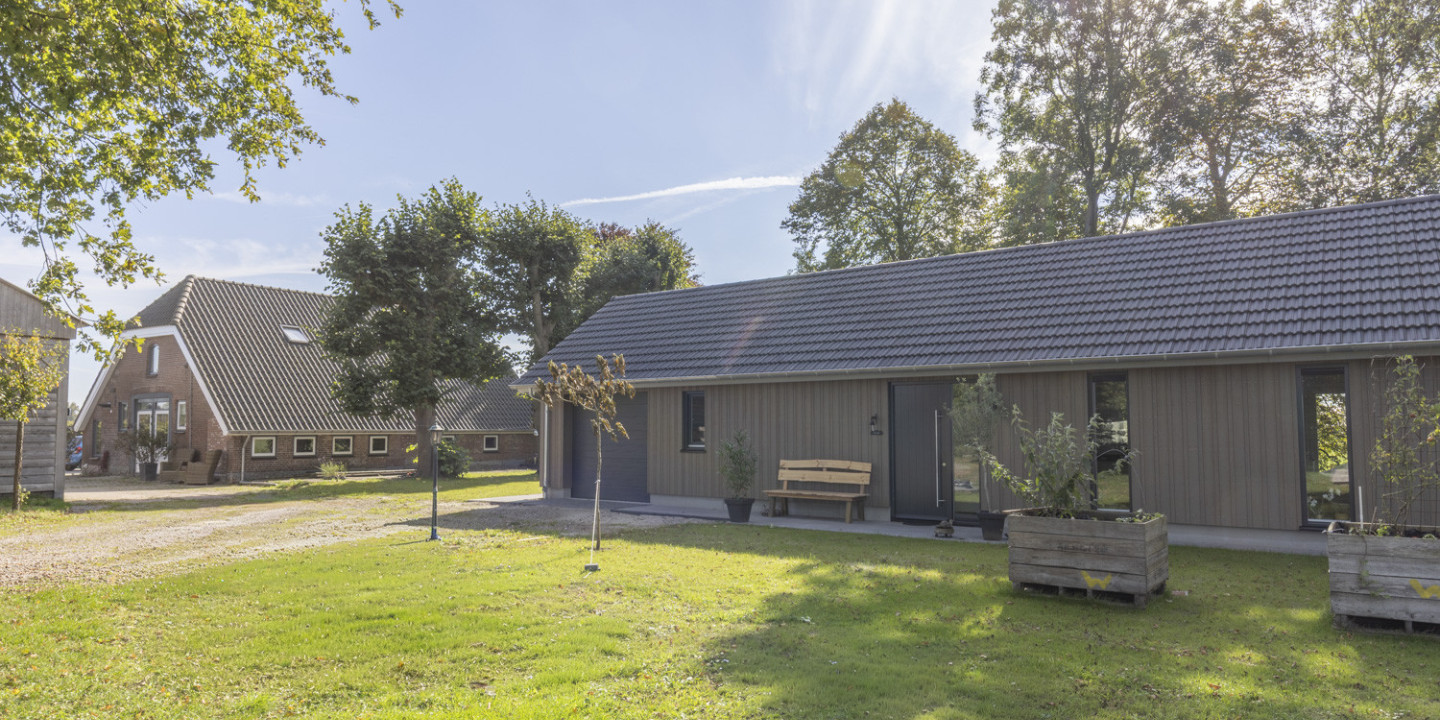 In het buitengebied is een mantelzorgwoning op het erf vaak vergunningvrij. Dat dit niet altijd een chalet of caravan hoeft te zijn bewijst deze woning op een agrarisch erf. Op dit erf was het maximale bebouwingsoppervlak nog niet bereikt. Bovendien is er een bestaande schuur gesloopt, waardoor er ruimte is ontstaan voor een volwaardige mantelzorgwoning.