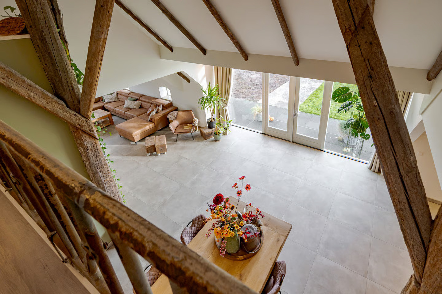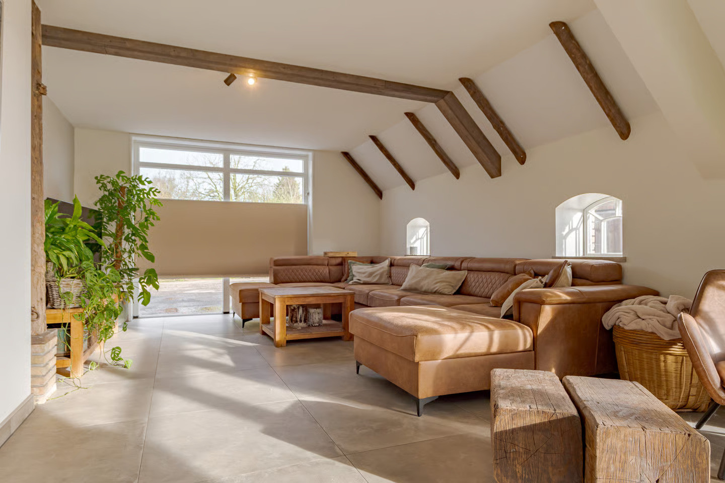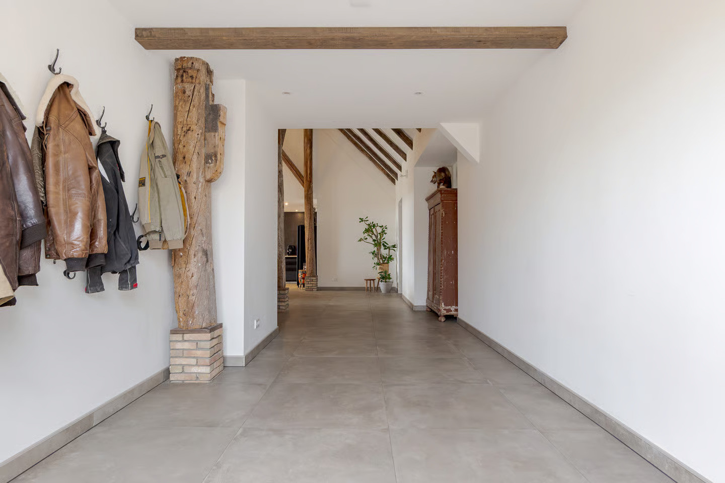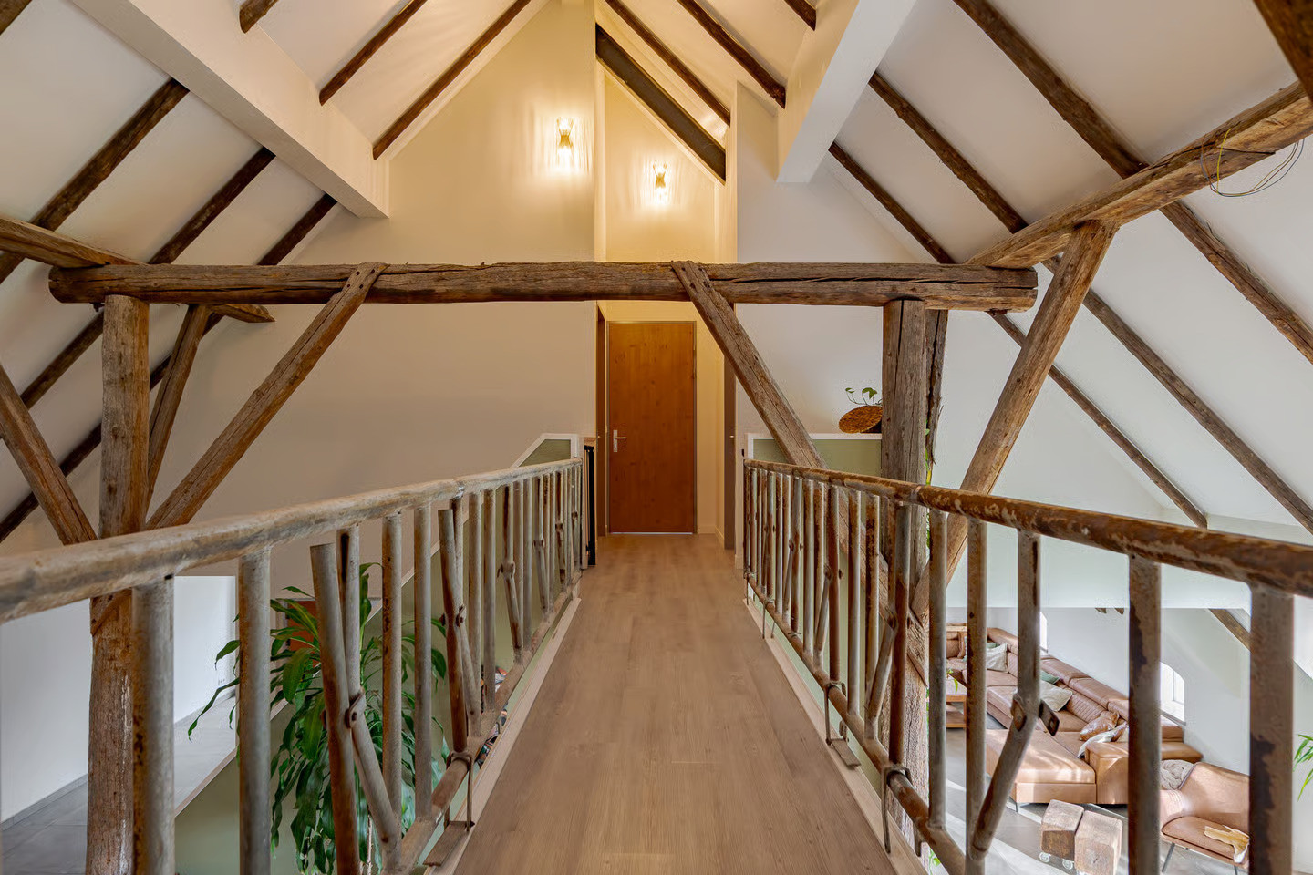 In het plaatsje Zevenhuizen, nabij Groningen, hebben we de transformatie van deze woonboerderij mogen verzorgen. Het ‘romp’-gedeelte van deze kop-rompboerderij uit 1938 troffen wij nagenoeg onaangetast aan. Vooral de kenmerkende houtconstructie van rondhout valt goed op in de hoge ruimte. Dit achterdeel van de boerderij is van opslagruimte getransformeerd naar een riante woning.