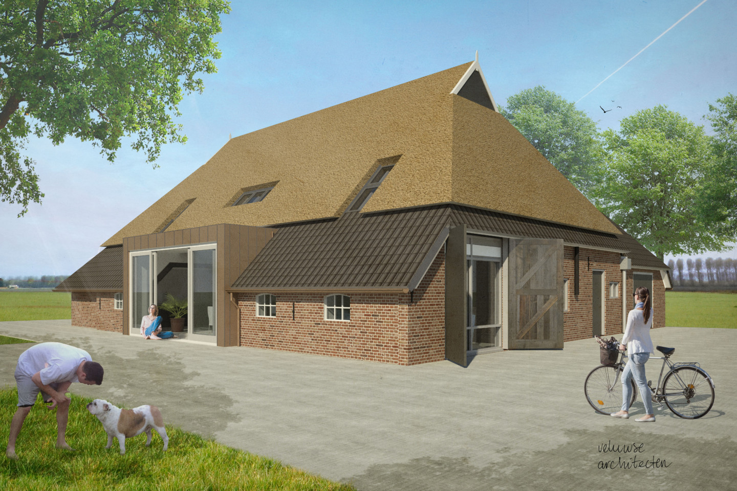 Het uitgangspunt voor het ontwerp is het behoud en versterken van de originele boerderij. De gevels zijn hersteld en waar nodig vernieuwd. De asbestgolfplaten op het dak zijn vervangen voor de oorspronkelijke rietbedekking. De nieuwe toevoegingen zijn eigentijds en in contrast met de historiserende elementen. De gevelafwerking van de keukenuitbouw is bekleed met koper. In de woonboerderij ontstaat door de open vide een ruimtelijk beeld waarbij de authentieke details zoals de houten gebinten en de sporenkap zichtbaar blijven.